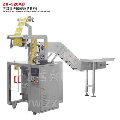 主要性能和結(jié)構(gòu)特點(diǎn): 此款機(jī)型采用料盤振動落料系統(tǒng),確保每袋所需粒片數(shù)。包裝可制三角包、三邊封、背封、四邊封等各種制袋形式。